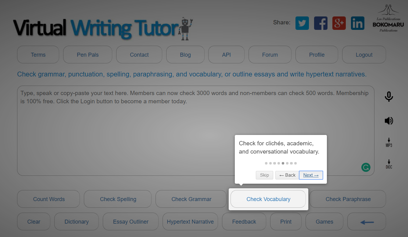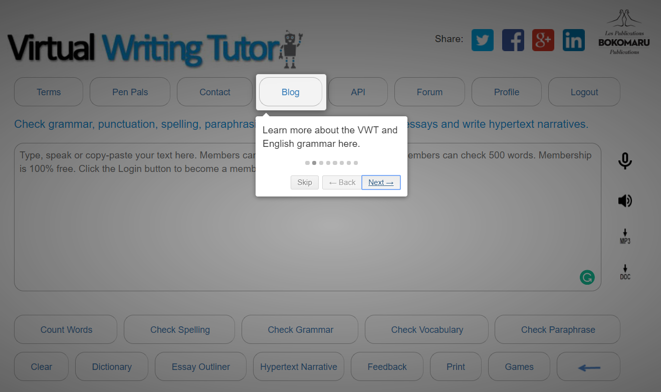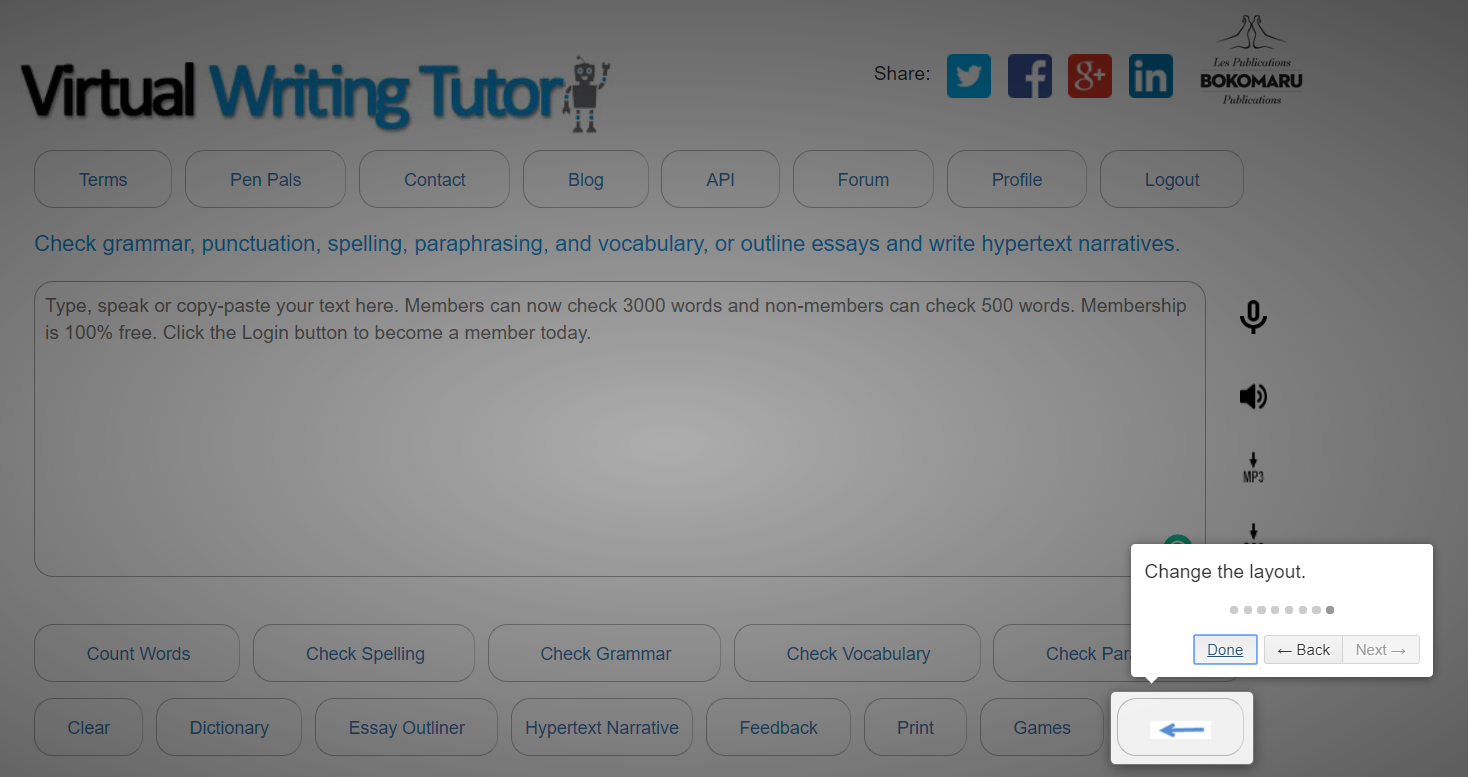 Of course there are other features that are underused and could learners improve their writing if they only knew about them, so here are the 9 steps of the walkthrough we added to the VWT.  If you follow or dismiss the walkthrough tutorial twice, it will never show again. We store a cookie in your browser to keep count.